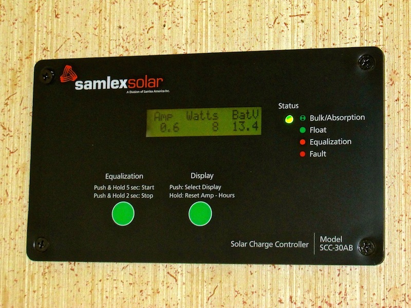 The most common causes of RV battery failure are undercharging and overcharging. The solar charging system we are using includes a Samlex 30 Amp Charge Controller which features a 4 stage regulator which regulates current and protects the batteries from over-charging.